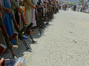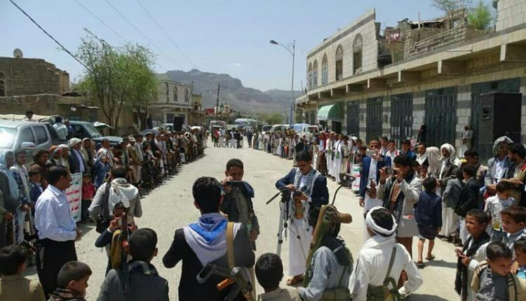 نظم ابناء عزلة عبس والغرابي بمدينة حجة اليوم الجمعة وقفة احتجاجية تدشينا للعام الخامس من الصمود في مواجهة العدوان وتأكيدا على الاستمرار بالثبات والصمود ورفد الجبهات بالمال والرجال.