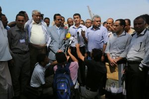 وأشار رئيس مؤسسة موانئ البحر الأحمر إلى أن وقف المشتقات النفطية أدى إلى حرمان ثلاث مدن من المياه النظيفة وفق ما صرحت به لجنة الصليب الأحمر الطبية .. مؤكدا أن إستمرار الوضع الحالي ينذر بكارثة تفشي وباء الكوليرا وغيرها.