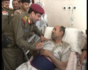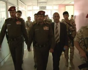 تفقد رئيس هيئة الأركان العامة اللواء الركن محمد عبد الكريم الغماري ومعه نائب رئيس هيئة الأركان اللواء الركن علي حمود الموشكي اليوم جرحى الجيش واللجان الشعبية في المستشفى العسكري بصنعاء.