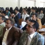 الدكتور حسين الوظاف عميد كلية التربية الدكتور عبده سحلول وعميد كلية العلوم التطبيقية الدكتور حمود عيسى وعددا كبير من الطلاب .