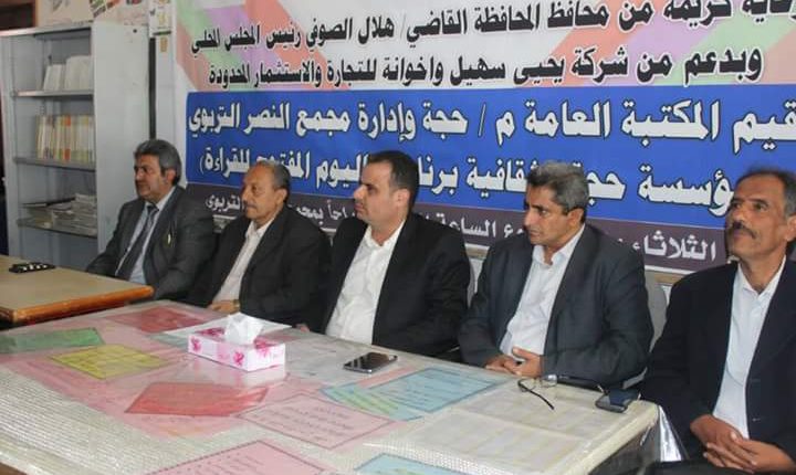 اطلع محافظ حجة هلال الصوفي اليوم على أنشطة الاسبوع الثاني من برنامج اليوم المفتوح للقراءة الذي تنفذه المكتبة العامة في المحافظة بالتعاون مع مؤسسة حجة الثقافية وإدارة مجمع النصر التربوي