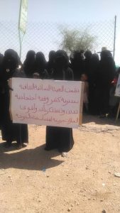تنديداً وإستنكاراً لجريمة إغتصاب فتاة الخوخة خرجت صباح اليوم الأربعاء ٢٠١٨/٤/٤ نساء مديرية كشر محافظة حجة في وقفة إحتجاجية تدين وتستنكر الجريمة الشنيعة التي إهتزت لها مشاعر كل يمانية..إرتكبها محتل عميل ومرتزق سوداني حقير لا يجوز السكوت عليها تحت أي مبرر..