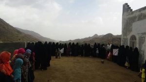 نظمت حرائر منطقة ماخر بكعيدنه عصر اليوم السبت وقفه تضامنية مع الفتاة التي انتهك عرضها حيوان سوداني يعمل مرتزق في تحالف العدوان السعودي الأمريكي الأماراتي الجبان بمدينة الخوخه المحتله،.