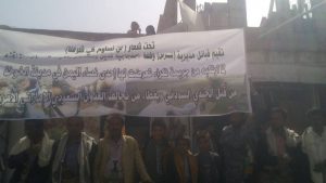 نفذت السلطة المحلية وقبائل مديرية شرس وقفة احتجاجية منددة بجريمة اغتصاب فتاة في مدينة الخوخة وكذا الجرائم التي استهدف فيها منازل الموانين بشكل مباشر في صعدة والحديدة وغيرها من المناطق ، واستنكر المحتجون الصمت الدولي ومنظمات حقوق الانسان امام تمادي قوى التحالف في ارتكاب ابشع الجرائم بحق النساء والاطفال في اليمن .