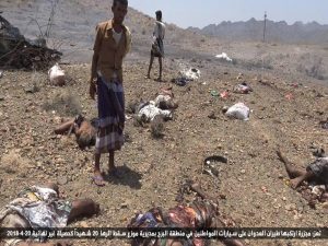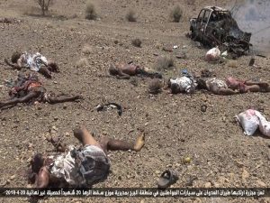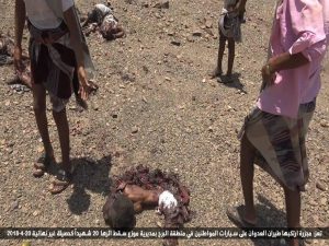 مجزرة جديدة يرتكبها طيران العدوان الامريكي السعودي في تعز On أبريل 20, 2018 Share #تعز: عشرون شهيدا في حصيلة غير نهائية لضحايا غارة لطيران العدوان الامريكي السعودي استهدفت سيارة لمتسوقين بعد عودتهم من سوق البرح بمديرية موزع الي منازلهم #مجزرتي_البرح_ومران Share FacebookTwitterGoogle+ReddItWhatsAppPinterestالبريد الإلكتروني