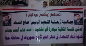 و الاستاذ اسماعيل المدومي رئيس مؤسسة الشهداء بمحافظه حجه