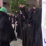 ونددت المحتجات باستمرار الجرائم البشعة التي يرتكبها العدوان الامريكي السعودي بحق الاطفال والنساء ي ظل صمت مخزي للامم المتحدة و المؤسسات والهيئات التي تدعي حماية حقوق الانسان .
