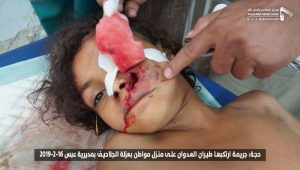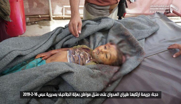 #حجة: استهدف طیران العدوان الأمريكي السعودي منزل المواطن جبار سريع شوعي جلحوف في عزلة الجلاحيف بمديرية عبس مما ادت إلى استشهاد طفل واصابة امرأتين وطفل آخر بجروح من نفس الأسرة واصابات بعضهم خطيرة 16-2-2019