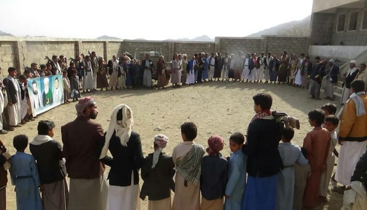 نظم أبناء عزلتي الظهرة والميرادة بمديرية الجميمة وقفتان احتجاجيتان تنديداً بجرائم العدوان الامريكي السعودي الاماراتي ومرتزقته على شعبنا.