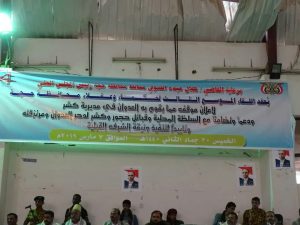 وجدد الصوفي دعوته للسلطة المحلية في كشر ومشائخ كشر إلى العمل على تطبيع الأوضاع في المديرية وإعادة النازحين إلى بيوتهم وتقديم الخدمات لهم بالتعاون مع الجهات المعنية