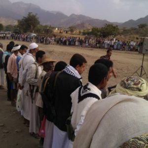حضر الوقفة أبوالزهراء المهلا مسؤول أنصار الله بالمديرية،ومشائخ وعقال وشخصيات وشباب مديرية قفل شمر الشرفاء ،