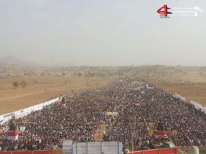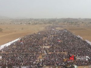 صور? أبناء حجة يحتشدون بقوة في تدشين العام الخامس من الصمود معلنين من على تراب تهامة الذي احترقت فوقه جحافل الغزاة أن القادم سيكون على الأعداء أكثر ألما وأشد تنكيلا