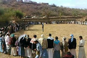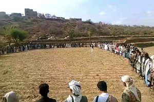 {?صور}ابناء مديرية الجميمة ينفذون وقفة قبلية للتنديد بجريمة استهداف طالبات مدرسة الراعي بمنطقة سعوان بالعاصمة صنعاء