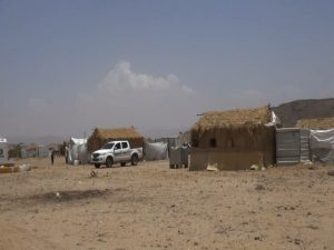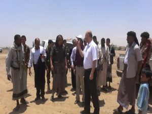 نائب رئيس الوزراء ووزير الصحة ومحافظ حجة ورئيس الهيئة الوطنية بالجمهورية يطلعون علي اوضاع النازحين بمخيم العكاشية بعبس