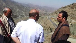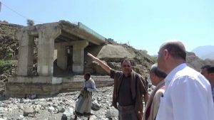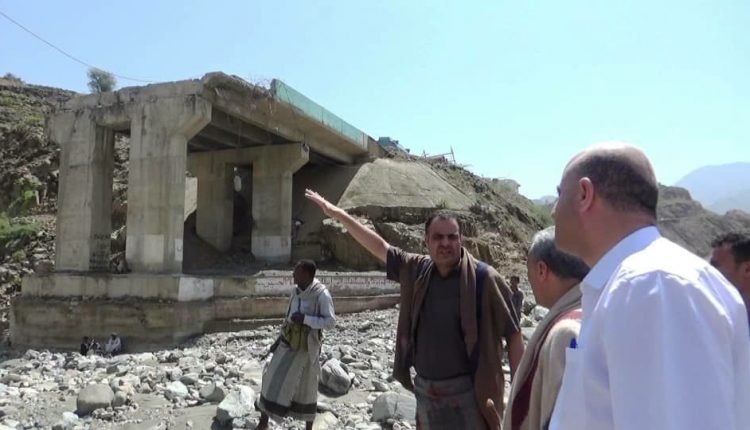 نائب رئيس الوزراء ومحافظ حجة ورئيس الهيئة الوطنية لإدارة وتنسيق الشئون الإنسانية يطلعون علي اعمال اعادة تأهيل وصيانة عقبة الأمان والاضرار التي لحقت بجسر وادي خايفة جراء غارات العدوان