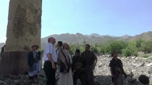 كما أطلعوا على مستوي الأضرار التي ألحقتها الغارات الجوية لطيران العدوان على جسر وادي خائفة بمنطقة الأمان بمديرية نجرة .