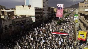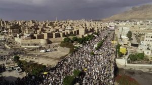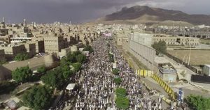 نظم بالعاصمة صنعاء ،اليوم الجمعة، مسيرة جماهيرية حاشدة في ساحة باب اليمن إحياء للذكرى الأولى لاستشهاد الرئيس صالح علي الصماد والذي اغتالته الأيادي الآثمة في محافظة الحديدة أثناء زيارة ميدانية للمحافظة.