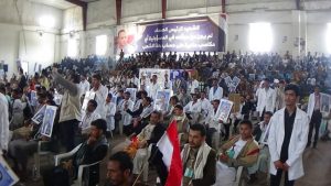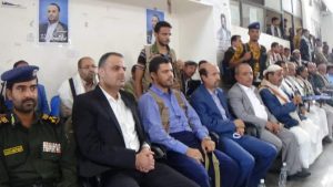 من جانبه القى المسئول العام لانصار الله بالمحافظة المجاهد نايف ابو خرفشة كلمة تحدث فيها عن حياة الرئيس الشهيد صالح الصماد فالسيد القائد حفظه الله هو من ربى الصماد وزكاه وعلمه الكتاب وأسقاه الحكمة من معينها في القول والعمل ونقله من مواطن بسيط في منطقة بني معاذ بضواحي صعدة إلى رجل عظيم بحجم أمة وقائد أسطوري ملهم ليس لليمنيين فحسب بل لكل الشعوب الحرة في العالم.