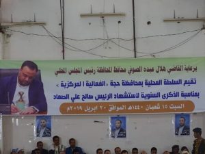 اقيمت اليوم بمدينة حجة برعاية محافظ المحافظة القاضي هلال عبده الصوفي الفعالية المركزية للذكرى السنوية الاولى لاستشهاد الرئيس صالح الصماد .