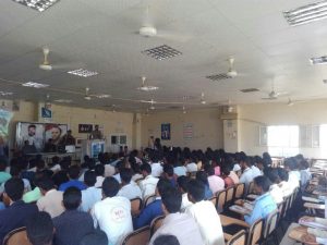 وركزت الفعالية علی شخصية ومناقب الشهيد الصماد ونماذج من سيرته وتواضعه وما قدمه من تضحيات في مواجهة العدوان وما اتسم به من حكمة وحنكة سياسية في إدارة شئون البلاد في ظروف بالغة التعقيد.حيث وتناول المجاهد أبو نائف خرفشه المسؤول العام لأنصار الله بالمحافظة خلال كلمته في الفعالية جانبا من مواقف وإباء وإخلاص وتسليم وإيمان الرئيس الشهيد صالح الصماد،وكيف استطاع أن يوحد الصف الداخلي ويتجاوز معضلات وتحديات المرحلة ويجعل الجميع يجمعون على حبه والإقتداء به ،معتبرا أن مشروعه الوطني” يد تحمي .. ويد تبني” سيستمر من أجل مستقبل اليمن وأبناءه الأوفياء ومنهم هذه الكوكبة من طلاب وطالبات كلية المجتمع وجميع الجامعيين الذين يواصلون تعليمهم رغم العدوان والحصار الجبان الذي يمارسة تحالف العدوان على اليمن للعام الخامس دون مجال للوهن أو اليأس أو الإستسلام،