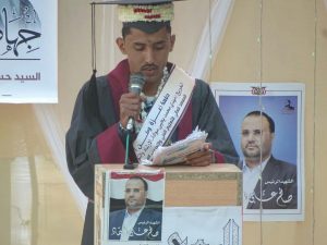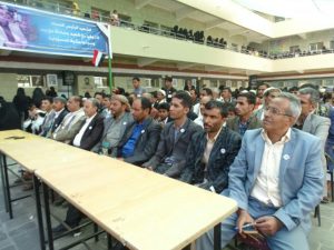 اقام المعهد العالي لتأهيل المعلمين والمعلمات بمحافظة حجه برعاية محافظ المحافظة هلال عبده الصوفي حفل تخرج لدفعه على خطى الصماد ماضون للطلاب والطالبات الخريجين من المعهد واحياء للذكرى الاولى من استشهد الرئيس الشهيد صالح الصماد تحت شعار عزة وطن .