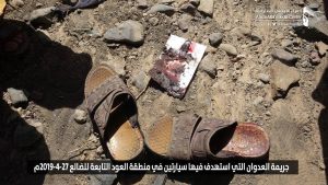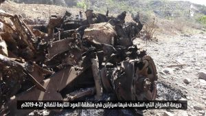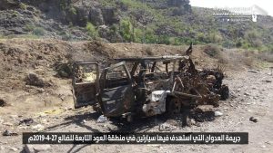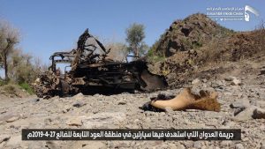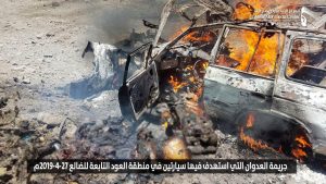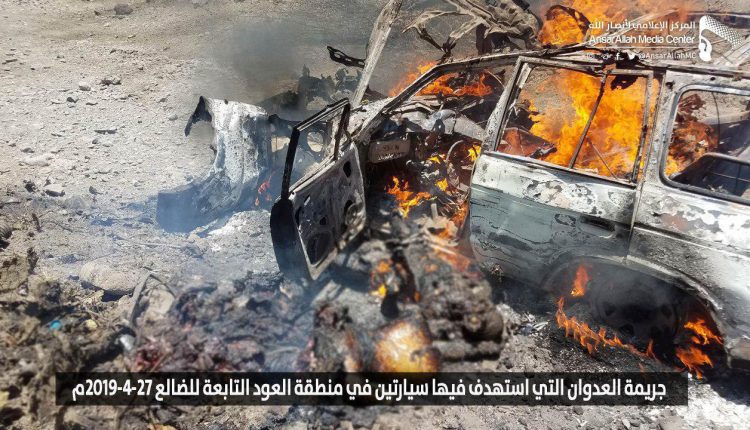 #الضالع : صور? _من جريمة طيران العدوان باستهداف سيارتين تحملان مواطنين بغارة جوية في منطقة العود مما خلف استشهاد 7 مواطنين بينهم اطفال ونساء . On أبريل 27, 2019 Share المركز الإعلامي بمحافظة حجة Share FacebookTwitterGoogle+ReddItWhatsAppPinterestالبريد الإلكتروني