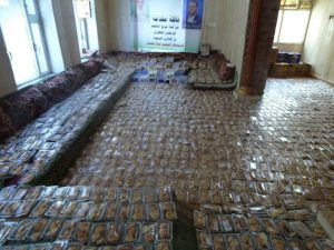 قدم ابناء مربع الشهيد “أبو يحيى المحطوري ” قافلة غذائيه متنوعة وفاءً لدماء الشهيد الرئيس الصماد ورفاقه في الذكرى الاولى لاستشهاده ودعمآ واسنادآ للجيش واللجان الشعبية لما يقدموه من تضحيات دفاعا عن الارض والعرض ضد اعتى عدوان غاشم بربري بقيادة ال سعود وامريكا ومرتزقتهم من الاعراب المنافقين.