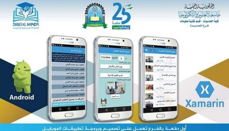 وأوضح مدير فرع الجامعة بالمحافظة الدكتور نبيل محمد منصر أن التطبيق الذي تم تصمميه مؤخرا بمنصة ( xamarn ) التي تشمل أغلب أنظمة تشغيل التلفونات يعد أول تطبيق من أنتاج طلاب الفرع .