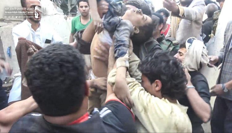 ? #صنعاء: استشهاد 6 مواطنين وجرح العشرات بينهم اطفال ونساء اثر غارة للعدوان استهدفت حي سكني في تقاطع شارعي الرباط والرقاص