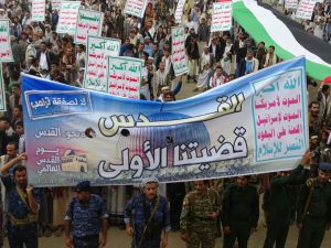 وفي المسيرة الجماهيرية أكد المحافظ الصوفي إن هذا الخروج المشرف لأبناء المحافظة لإحياء يوم القدس يحمل دلالات بعظمة ومكانة القدس الشريف في قلوب اليمنيين .