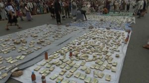 واشتملت القافلة التي انطلقت من مدينة عبس بحضور محافظ المحافظة هلال الصوفي ومشرف عام المحافظة نائف أبو خرفشة ونائب وزير الزراعة ماجد المتوكل ووكلاء المحافظة محمد القاضي ونبيل الجرب وعدد من أعضاء مجلس النواب وقيادات السلطة المحلية والتنفيذية والقيادات الأمنية والمشائخ والوجهاء، اشتملت على 90 مليون ريال نقداً و80 دراجة نارية وكميات كبيرة من المواد الغذائية والأغنام والمواشي.