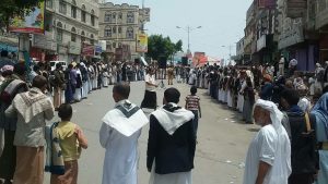 ندد أبناء مدينة حجة مربع الظهرين في وقفة احتجاجية لهم اليوم بتهديدات برنامج الأغذية العالمي التابع للأمم المتحدة تعليق عمليات تقديم المساعدات الغذائية في مناطق سلطة المجلس السياسي الأعلى .
