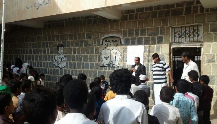 دشن مدير مكتب التربية والتعليم بالمحافظة الأستاذ علي القطيب ومدير إدارة التربية عبس الاستاذ أحمد حسن بلال يومنا هذا الأحد 17_11_2019 حملة التوعية بمرض حمى الضنك الذي يجتاح مديرية عبس والإعداد لتنفيذ الوقفات الاحتجاجية والمعارض والبرامج بمناسبة اليوم العالمي للطفل .