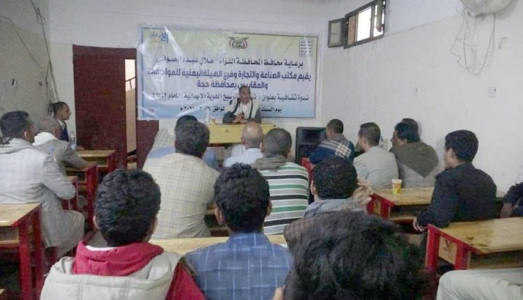 عُقدت اليوم السبت ، بمحافظة حجة ندوة ثقافية حول ترسيخ وتأصيل الهوية الإيمانية نظمها مكتب الصناعة والتجارة وفرع الهيئة اليمنية للمواصفات والمقاييس.