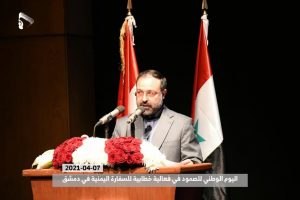 أقامت السفارة اليمنية اليوم الأربعاء فعالية خطابية بدار الأوبرا بدمشق تحت شعار “اليوم الوطني للصمود.. هنا #صنعاء من دمشق”. وأفتتح سعادة السفير عبد الله علي صبري ومعه وزيرة الثقافة السورية الدكتور لبانة مشوح، معرض الصور الذي شمل الجرائم الوحشية التي ارتكبها تحالف العدوان بحق اليمن أرضاً وإنساناً، كما اشتمل المعرض على مظاهر الصمود الشعبي في مواجهة العدوان والحصار الظالم، ومشاهد الانتصارات والعمليات النوعية للجيش واللجان الشعبية.