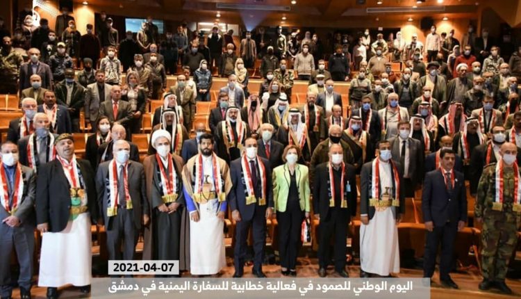 واستدرك السفير صبري بالقول، إن الصمود الأسطوري اليمني بالمقاومة والتلاحم الوطني أفشل المخططات والأهداف الخفية لتحالف العدوان السعودي الأمريكي، كما فعلت الجمهورية العربية السورية التي أسقطت دولة الخرافة الداعشية، وصمدت في وجه الحرب والمؤامرة الكونية على سورية دولة وشعباً ورئيساً.