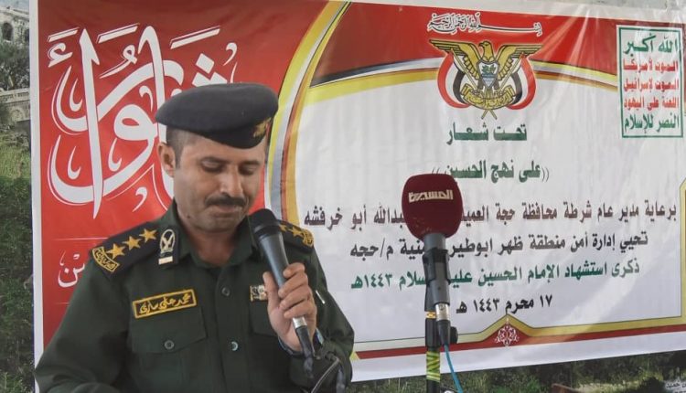 أحيت منطقة ظهر أبو طير الأمنية بمحافظة حجة اليوم ذكرى استشهاد الإمام الحسين عليه السلام بفعالية بعنوان ” على نهج الحسين”.