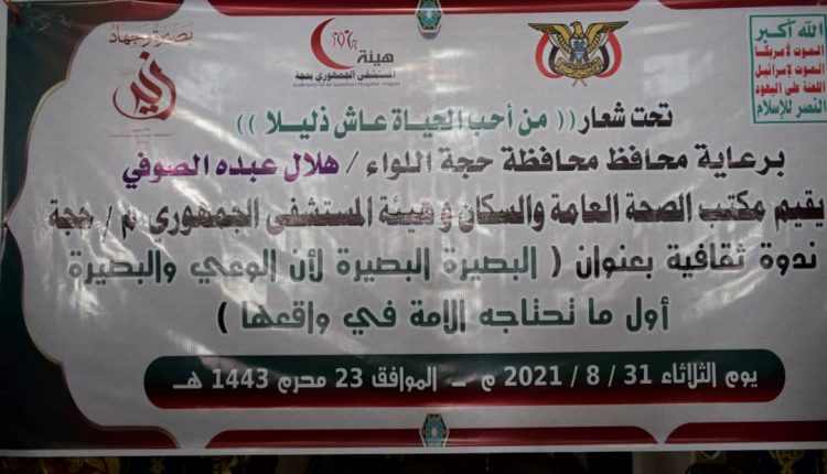 نظم مكتب الصحة العامة والسكان وهيئة المستشفى الجمهوري بمحافظة حجة اليوم ندوة ثقافية بذكرى استشهاد الإمام زيد عليه السلام.