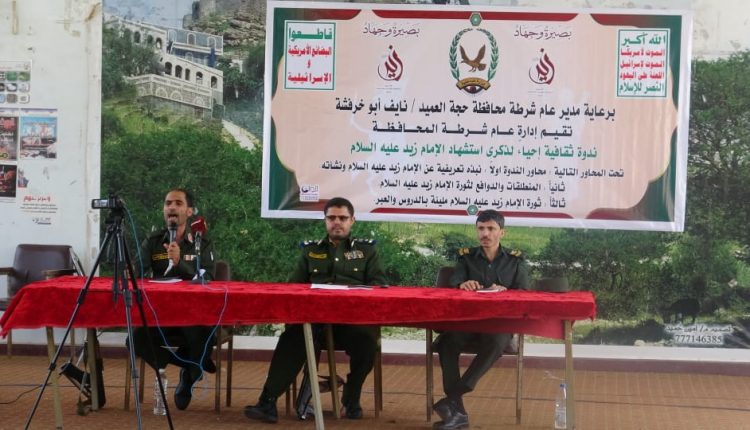 نظمت إدارة أمن محافظة حجة اليوم ندوة فكرية بذكرى استشهاد الإمام زيد عليه السلام.