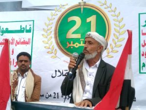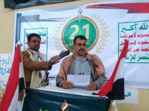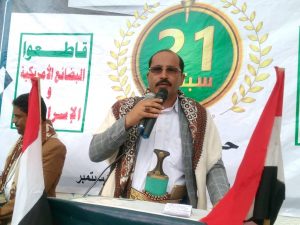 وأكد المضي في تحقيق كافة أهداف الثورة وطرد الغزاة والمحتلين من أرض اليمن وأن ثورة 21 سبتمبر أعادت لليمن مكانته وحريته وإستقلاله.. كما أكد أهمية الحفاظ على منجزات الثورة في الخروج من التبعية والتحرر من الهيمنة والإرتهان والإستمرار في رفد الجبهات بقوافل المال والرجال والتحرك مع كل الأحرار لتحرير الوطن ..
