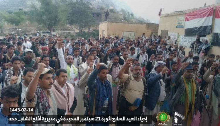 شهدت مديرية أفلح الشام بحجة اليوم الثلاثاء فعالية خطابية وثقافية إحتفاء بالعيد السابع لثورة 21 من سبتمبر المباركة ..