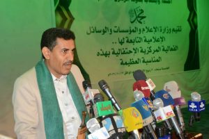 وأشار إلى أن العالم كله ينظر اليوم إلى الشعب اليمني بإعجاب وإجلال لأنه رغم العد وااان والحصااار والمآسي والمحن التي يعاني منها، يُحيي هذه المناسبة بهذا الزخم الكبير.
