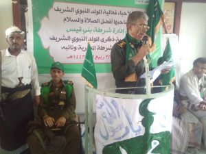 وخلال الفعاليه بحضور قادات وضباط وأفراد الاجهزه الامنيه.أشارت الكلمات أهمية الاحتفال بالمولد النبوي لاستلهام الدروس والعبر وإحياء سنته العطرة والسير على نهجه القرآني والجهادي في مواجهة قوى العدوان السعودي الأمريكي.