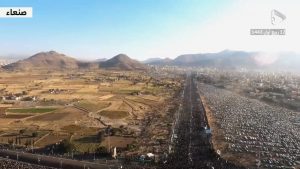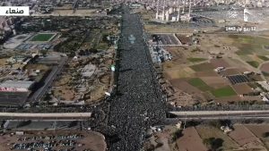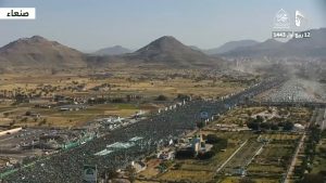 وأكدت الحشود، أن الاحتفاء المهيب بذكرى المولد النبوي الشريف رسالة للعالم أجمع باستمرار الصمود والثبات في مواجهة العدوان الأمريكي السعودي ورد قوي على الإساءة للرسول الكريم من قبل أعداء الأُمة.