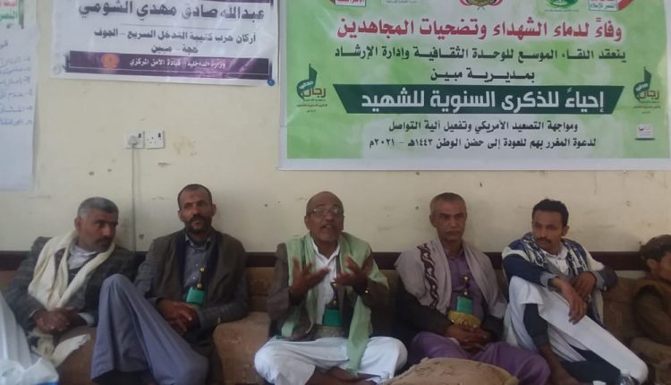 وأكد مدير المديرية منصور حمزة السير على درب الشهداء والاهتمام بأسرهم ومواجهة التصعيد الأمريكي برفد الجبهات بقوافل الرجال والعطاء حتى تحقيق النصر وتكثيف الجهود في التواصل مع المغرر بهم للعودة إلى جادة الصواب.