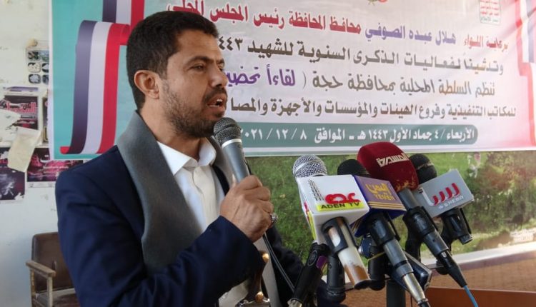وفي اللقاء بحضور وزير الشئون الاجتماعية والعمل عبيد بن ضبيع اكد محافظ حجة هلال الصوفي اهمية إحياء الذكرى السنوية للشهيد للتعبير عن عظمة المناسبة والشهداء وتضحياتهم دفاعاً عن الدين والعرض والسيادة الوطنية.