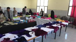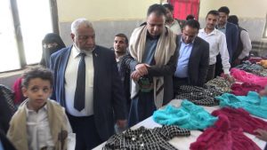 واستمع الوزير والمحافظ ومعهما المدير التنفيذي لصندوق الرعاية الاجتماعية ووكيل المحافظة إلى شرح من مدير مكتب الشؤون الاجتماعية حول مكونات المعرض من المشغولات والخياطة والتطريز والتريكو والملابس.