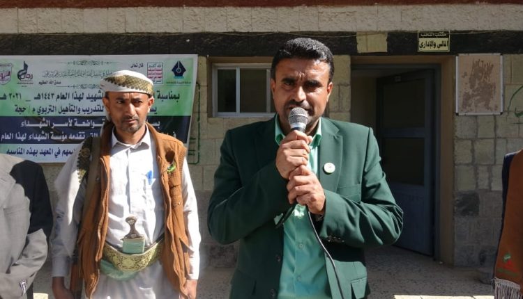 وفي التوزيع ثمن مندوب مؤسسة الشهداء بالمحافظة مطهر صفي الدين، مبادرة المعهد العالي ومساهمته في توزيع سلال غذائية لعدد من أسر الشهداء رغم شحة الامكانات.