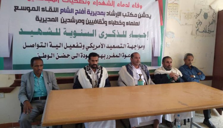 دشن مكتب الإرشاد بمديرية أفلح الشام محافظة حجة اليوم، فعاليات الذكرى السنوية للشهيد، بلقاء موسع ضم العلماء والخطباء والمرشدين.