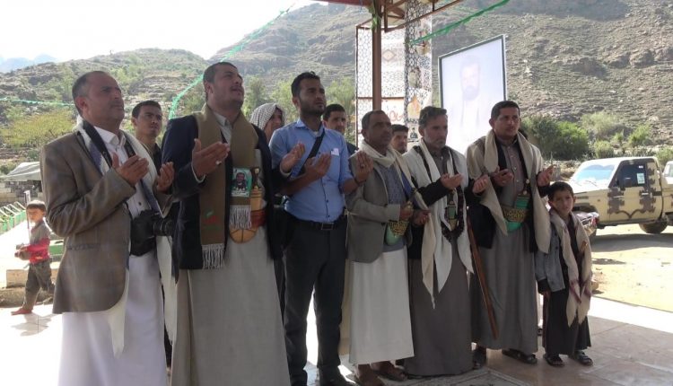 وقرأ مدير مكتب الشباب والرياضة بالمحافظة مراد شلي ومنتسبي الشباب والرياضة الفاتحة إلى أرواح الشهداء.. لافتين أشار الى أن اليمن ينعم بالأمن والاستقرار بتضحيات الشهداء وبطولاتهم في ميادين الصمود.